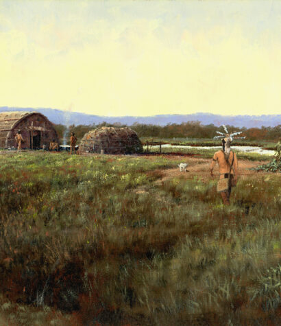 Pap-scan-ee, L.F. TantilloAn artistic rendering of a Mahican encampment on the east bank of the Hudson River, circa 1600. It is based on archaeological excavations...